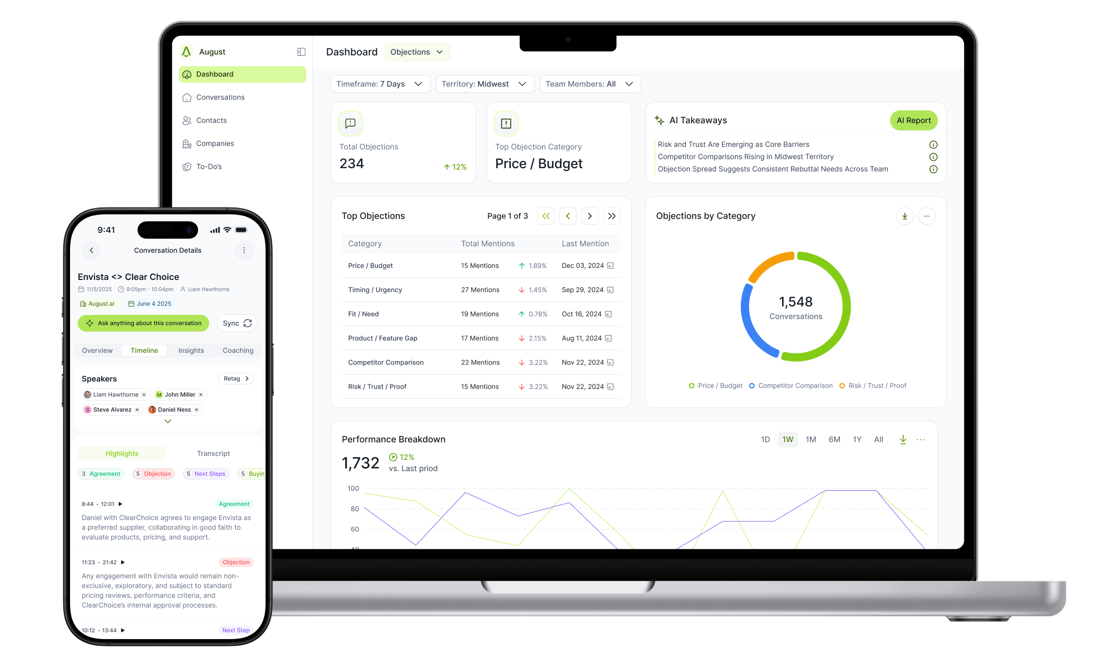 August captures every sales conversation and acts as an assistant for your team. It eliminates busywork, updates your CRM, automates coaching, and unlocks insights.